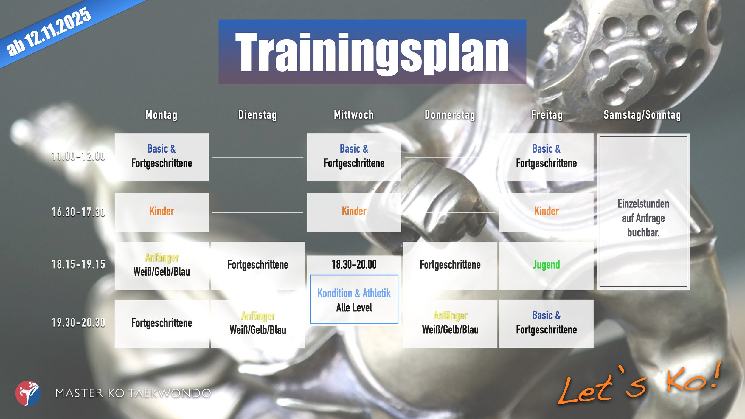 Trainiere so oft du kannst. Im Durchschnitt kommen Mitglieder 2-3 Mal in der Woche ins Dojang. Wenn du möchtest kannst du selbstverständlich auch täglich ins Training.