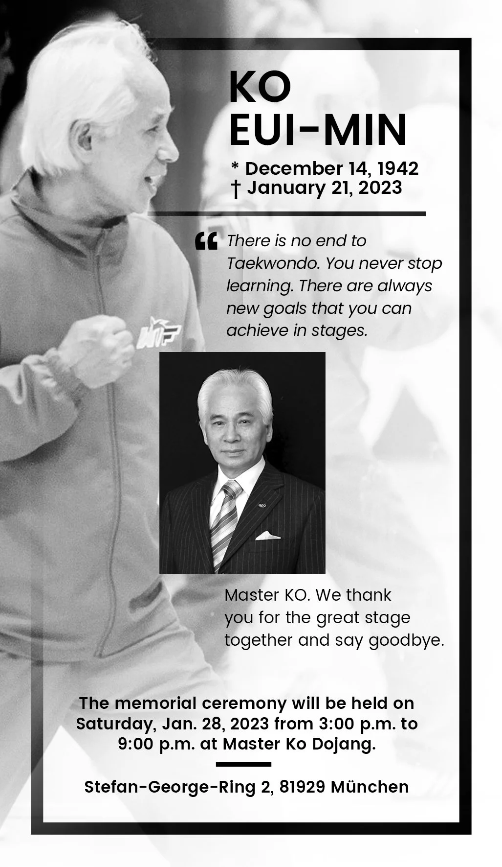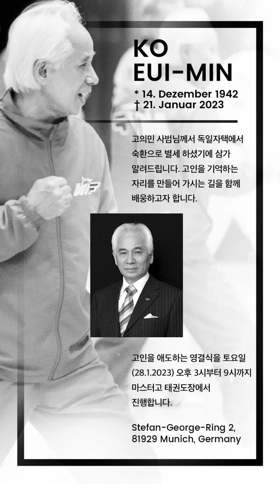 Master Ko Eui-Min passed away due to cardiovascular failure during the night of Jan. 21st 2023.