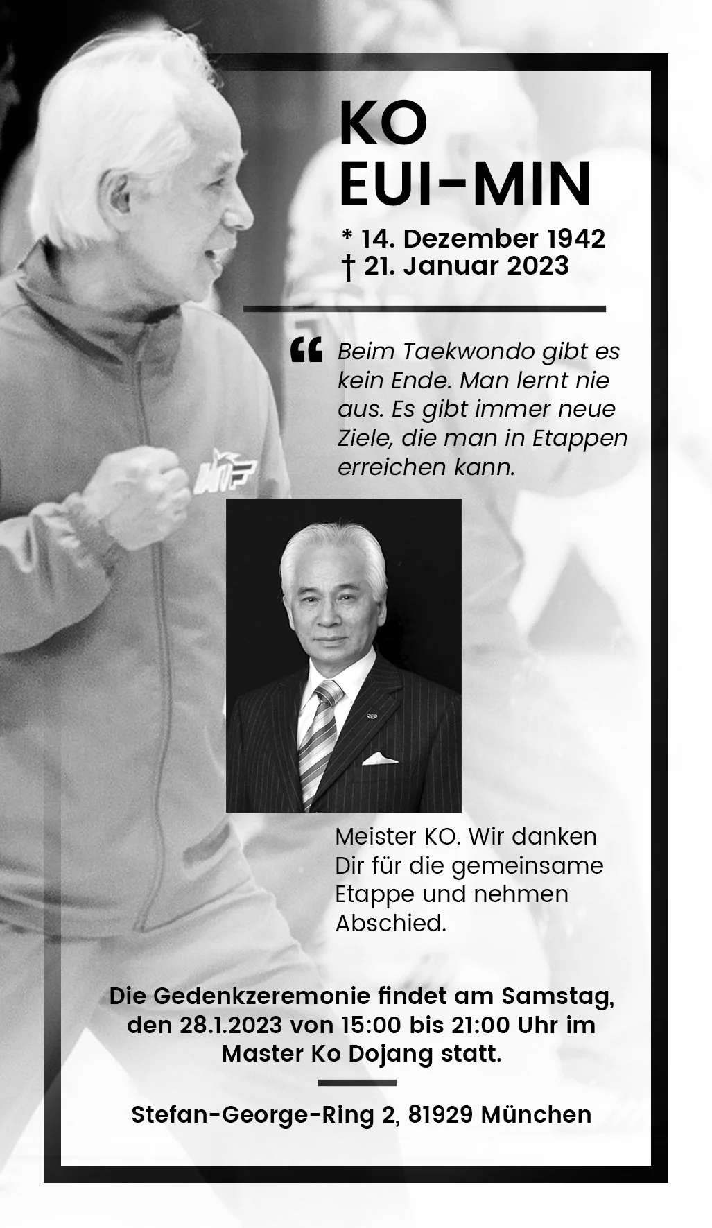 Meister Ko Eui-Min verstarb durch Herz-Kreislaufversagen in der Nacht am 21.1.2023.
