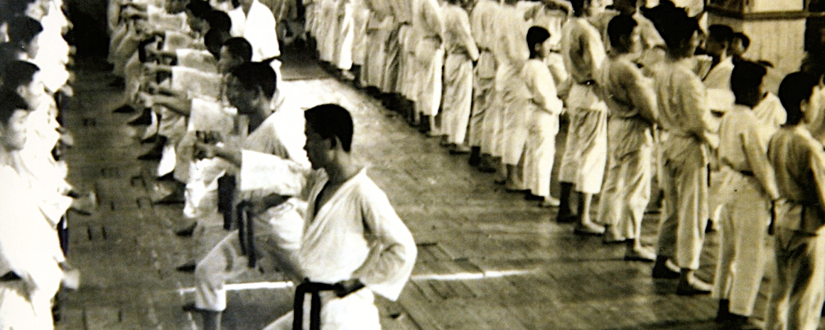 1956 - Trainierende Prüfungsteilnehmer im Zentral-Taekwondo-Dojang Seoul. Hier wurden anfänglich alle Dan Prüfungen abgehalten.